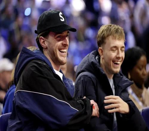 NBA伦敦赛当日下午在伦敦O2体育馆举行,奥兰多魔术对阵孟菲斯灰熊。刚在周六代表阿森纳出战的德克兰-赖斯来到现场观赛,坐在场边贵宾席,视角极佳。